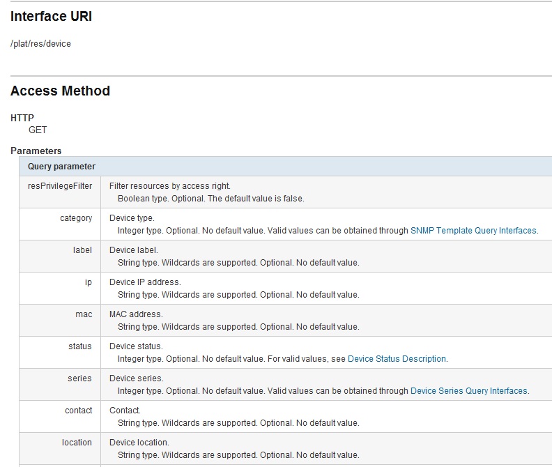 <link op=”GET” rel=”self” href=”http://10.101.0.201:8080/imcrs/plat/res/device/15” />
