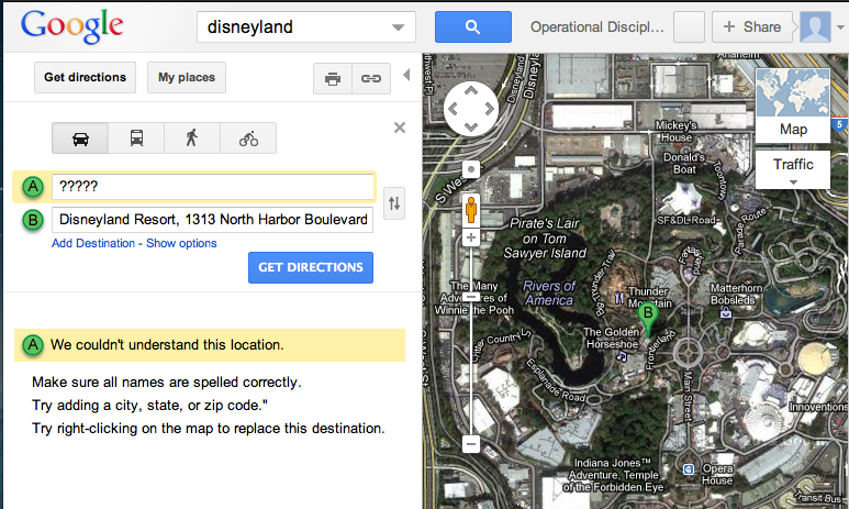 Take the case above. Say you want to get to Disneyland. Google can tell you were Disneyland is, but if you don’t have a starting point, there’s really no way to understand how you are going to get to where you want to be.