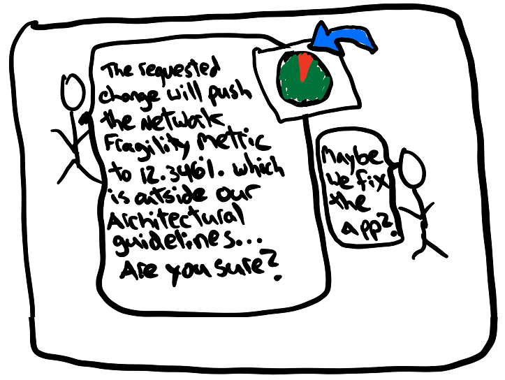 What I wanted here was to create some pseudo-mathematical way of generating a measurement that can communicate to the management structure WHY the requested change is a really, really, bad idea.